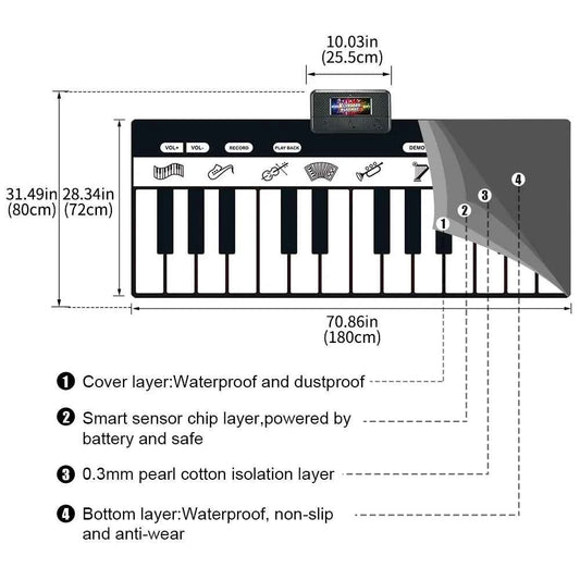 180x72cm Musical Piano Mat for Kids - Electronic Black & White Keyboard Baby Play Mat Rug Early Educational Toy Gift