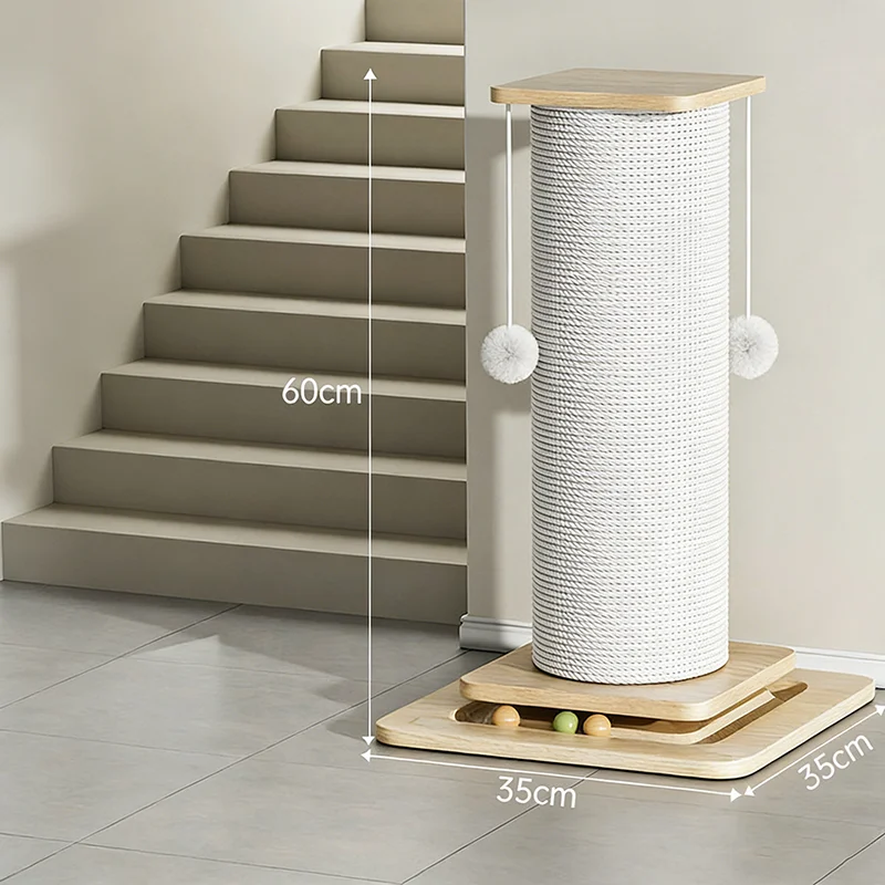 Sturdy and Stable Construction: A heavy-duty cat scratching post is designed to withstand the vigorous scratching and climbing of active cats. It is built with high-quality materials such as solid wood, thick sisal rope, and reinforced bases to ensure long-lasting durability and stability.