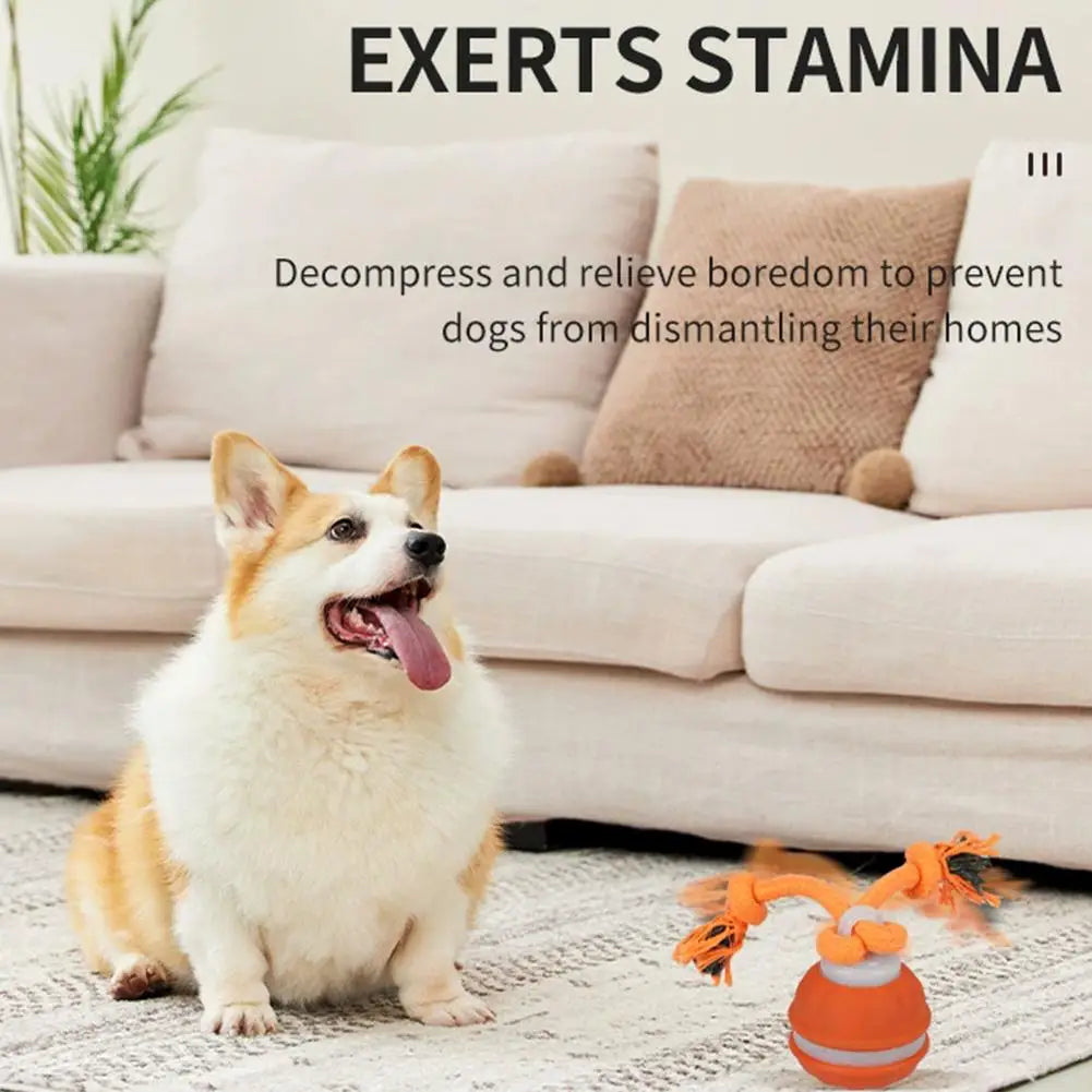 Interactive Dog Toy Ball with Rope Electronic Motion Activated Rolling Ball for Indoor Cat Dog Play Toys for Puppy Training Ball