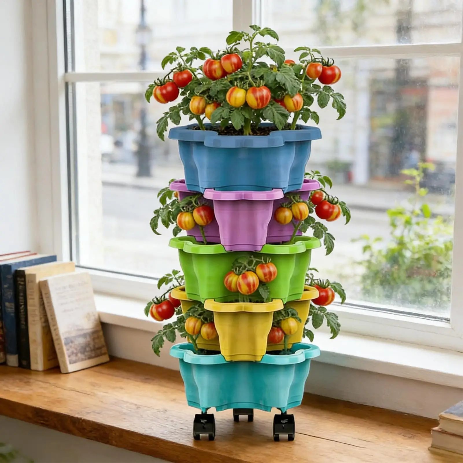 5-Tier Vertical Stackable Planter Tower for Strawberries and Herbs